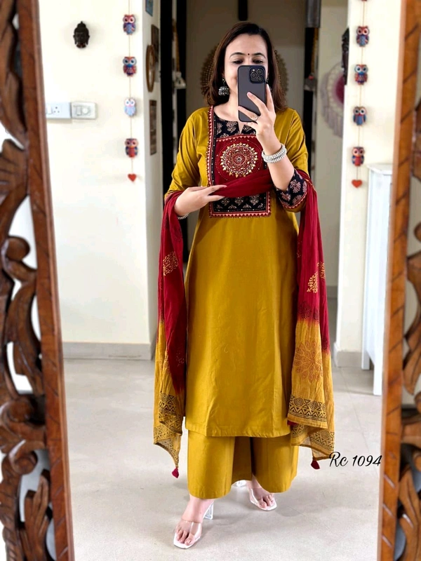 *πŸ’₯ Beautiful Embroidery Yoke Cotton Suit Set Cotton Kurta With Embroidery Yoke And Handwork detailing With Panel Work And Back Side Embroidery Paired Up With Cotton Pant and Duppatta*πŸ₯°πŸ’«