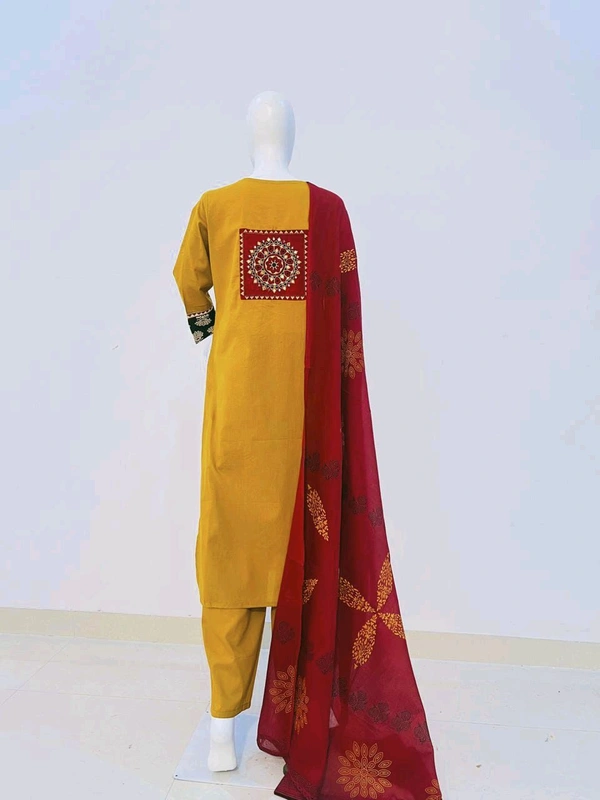 *πŸ’₯ Beautiful Embroidery Yoke Cotton Suit Set Cotton Kurta With Embroidery Yoke And Handwork detailing With Panel Work And Back Side Embroidery Paired Up With Cotton Pant and Duppatta*πŸ₯°πŸ’«