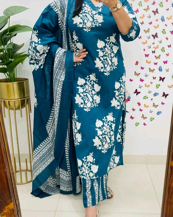 5659 New Heavy Cotton Kurta Pant Dupatta Sequence Work