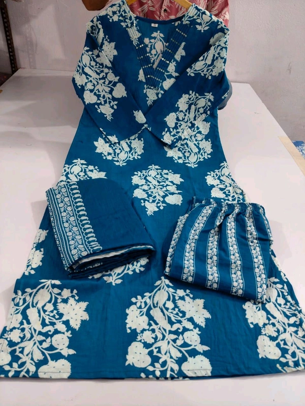 *🌹🌹Pure fine Cotton fabric Sequence Work Kurti with Pant with cotton 100-100 Dupatta*🌹🌹