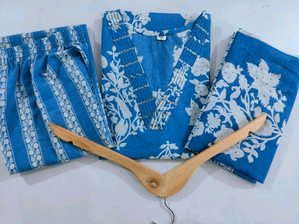 *🌹🌹Pure fine Cotton fabric Sequence Work Kurti with Pant with cotton 100-100 Dupatta*🌹🌹