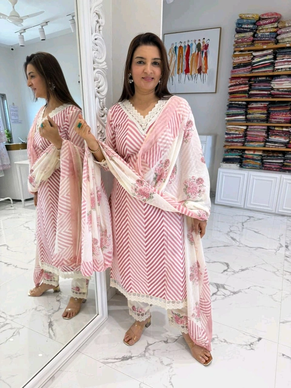 *The month of Saavan has not even started yet. Before that we have brought for you a very beautiful lehariya Zig Zag print suit with very beautiful flowers print pant and matching malmal Duppata*