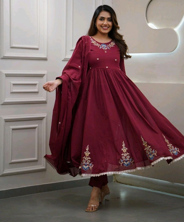 🧵 *Work -Beautiful detail floral embroidery work on kurti neck , sleeve , allover kurti and in dupatta*