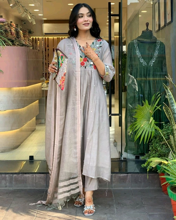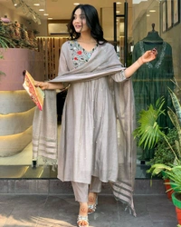 *Details -: Beautiful cotton fabric Anarkali kurti pant and dupatta.