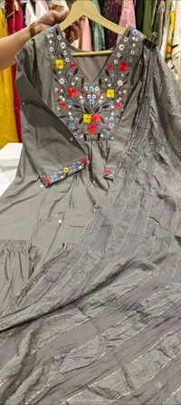 5677 New Very Beautiful 3ps Set Beautiful cotton fabric Anarkali kurti pant and dupatta. embroidery work