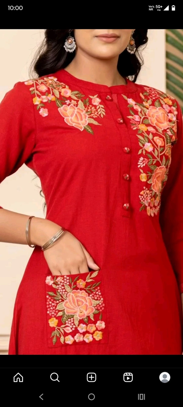 5753 New Heavy Pure fine Cotton Embroidery Work Kurti with Pant with *Pocket