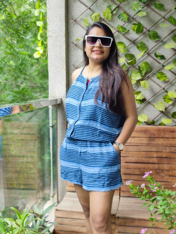 SHORT STRIPED JUMPSUIT (WITH ELASTIC & KNOT)