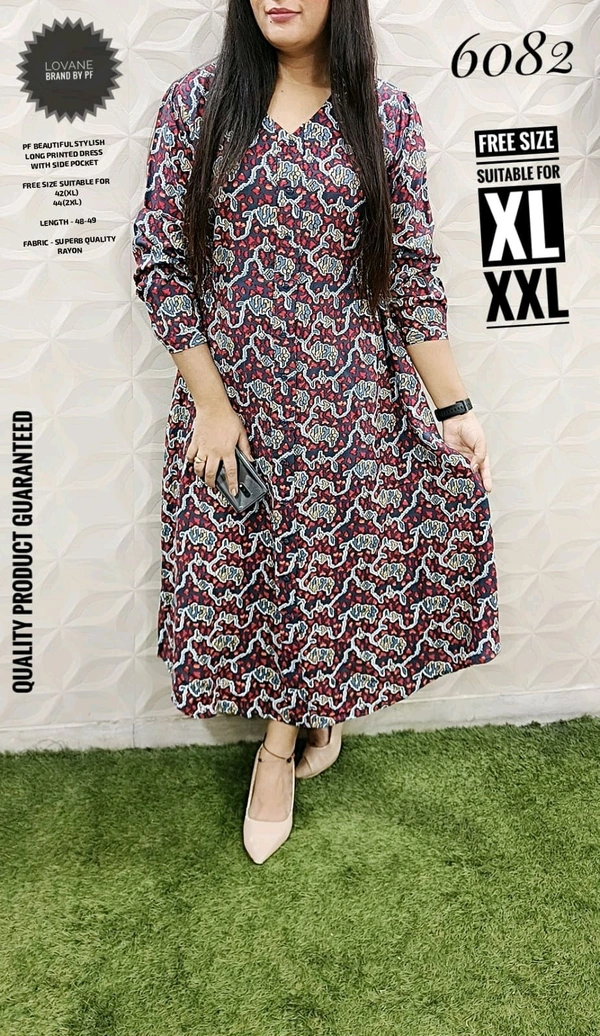 5459 IMPORTED BEAUTIFUL STYLISH PRINTED LONG DRESS WITH SIDE POCKET