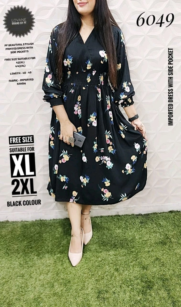 *PF IMPORTED BEAUTIFUL STYLISH RAYON DRESS WITH SIDE POCKET*