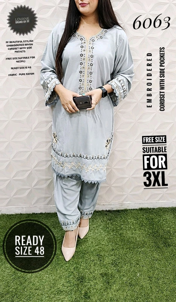6063 BEAUTIFUL EMBROIDERED RAYON CORDSET WITH SIDE POCKETS