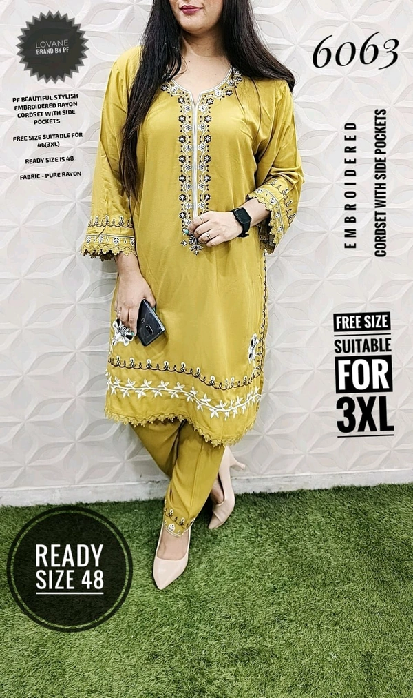 6063 BEAUTIFUL EMBROIDERED RAYON CORDSET WITH SIDE POCKETS