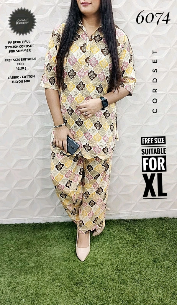 6074 STYLISH CORDSET RAYON AND SLUB COTTON