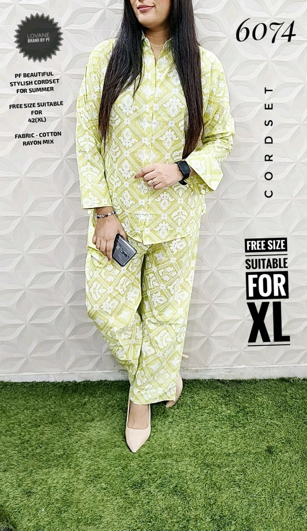 6074 STYLISH CORDSET RAYON AND SLUB COTTON