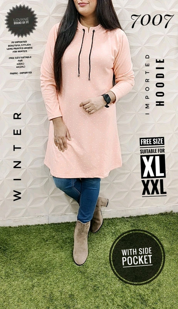 7007 IMPORTED BEAUTIFUL STYLISH PRINTED LONG WINTER HOODIE WITH SIDE POCKET