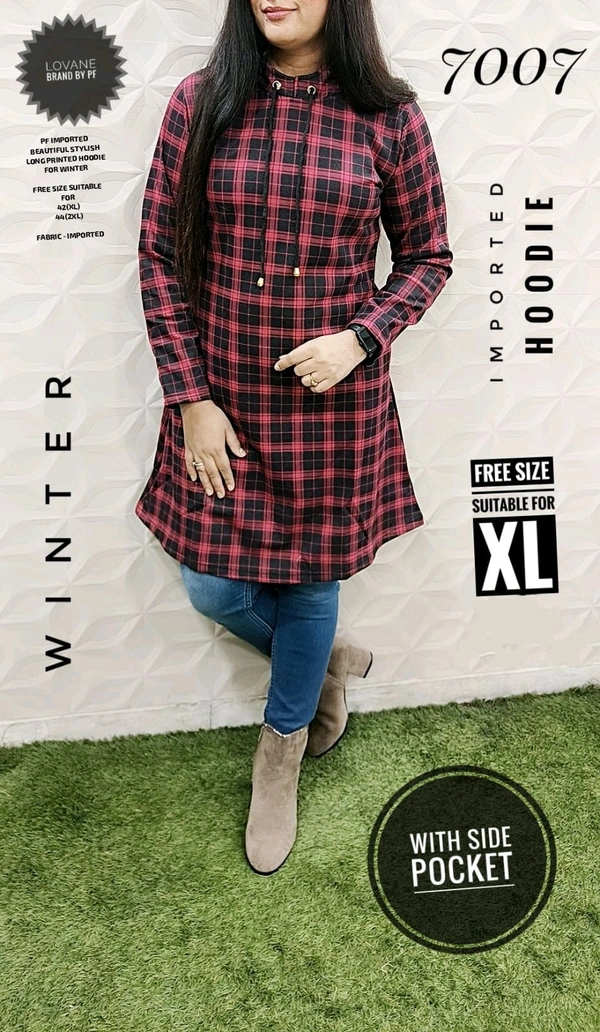 7007 IMPORTED BEAUTIFUL STYLISH PRINTED LONG WINTER HOODIE WITH SIDE POCKET