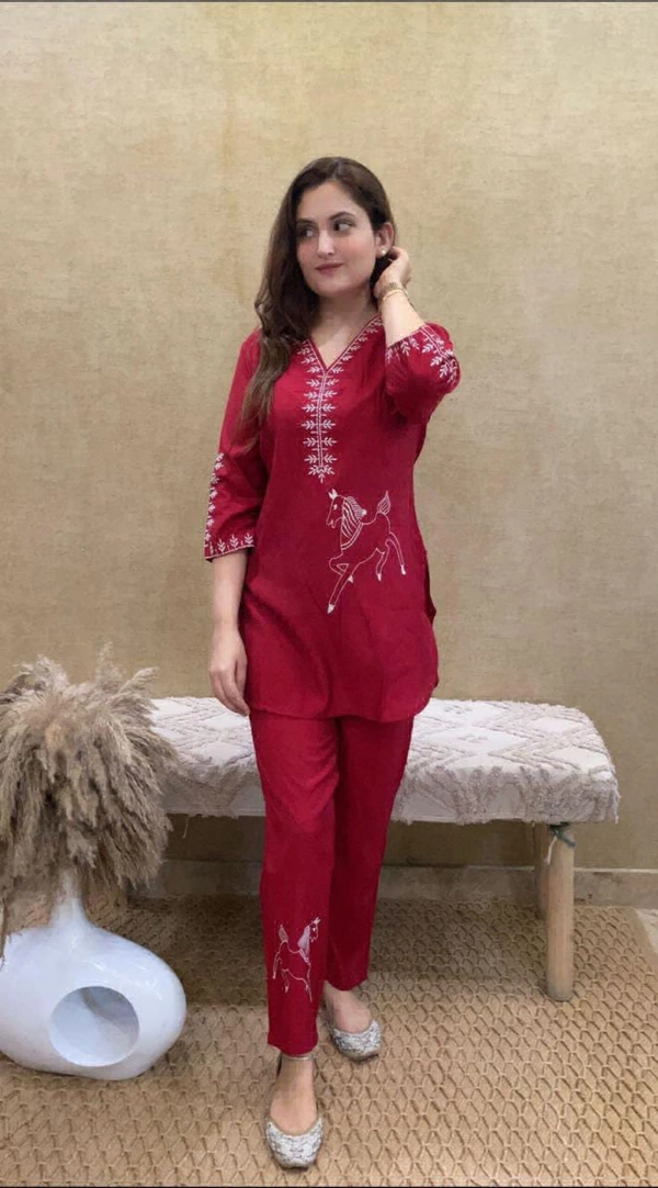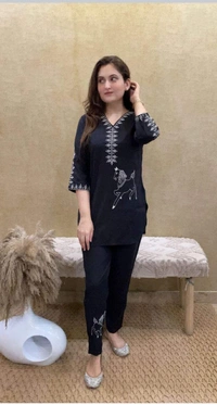 Very classy decent & sober pc summers special cord set in fabric cottan with beautiful contrast white Hand embroidery work