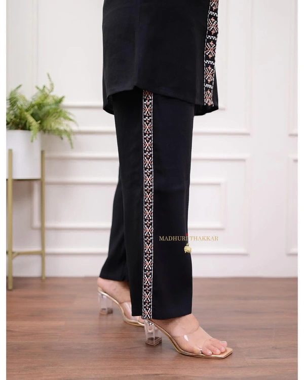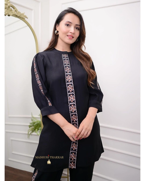 Featuring Beautiful yet elegant statement coord set, available in two beautiful colour .it is crafted with finest thread embroidery on top and bottom. A must have for your day rituals , office, meeting, travel...