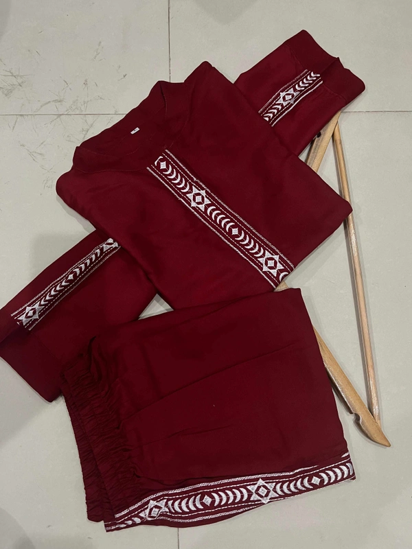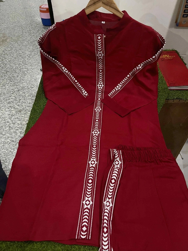 Featuring Beautiful yet elegant statement coord set, available in two beautiful colour .it is crafted with finest thread embroidery on top and bottom. A must have for your day rituals , office, meeting, travel...