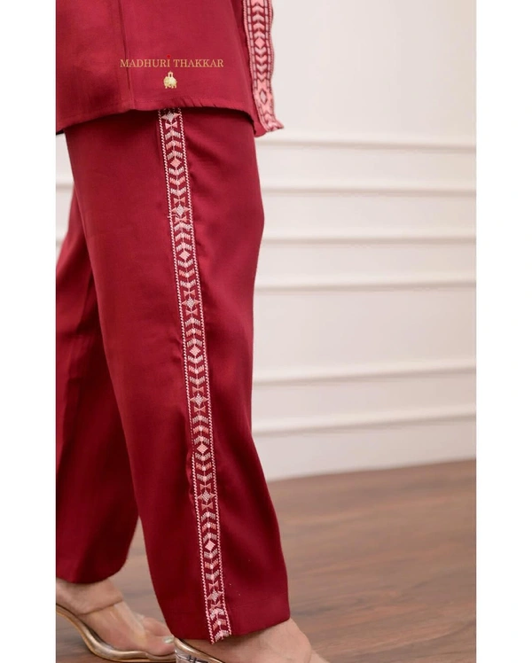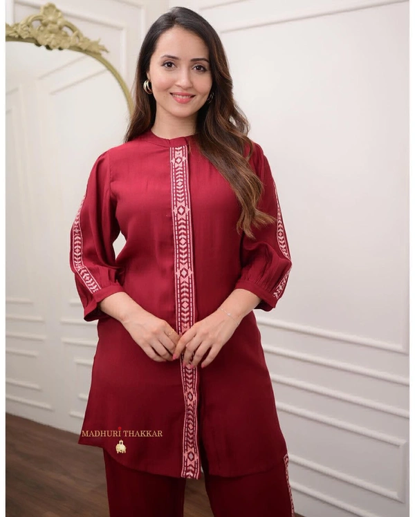 Featuring Beautiful yet elegant statement coord set, available in two beautiful colour .it is crafted with finest thread embroidery on top and bottom. A must have for your day rituals , office, meeting, travel...
