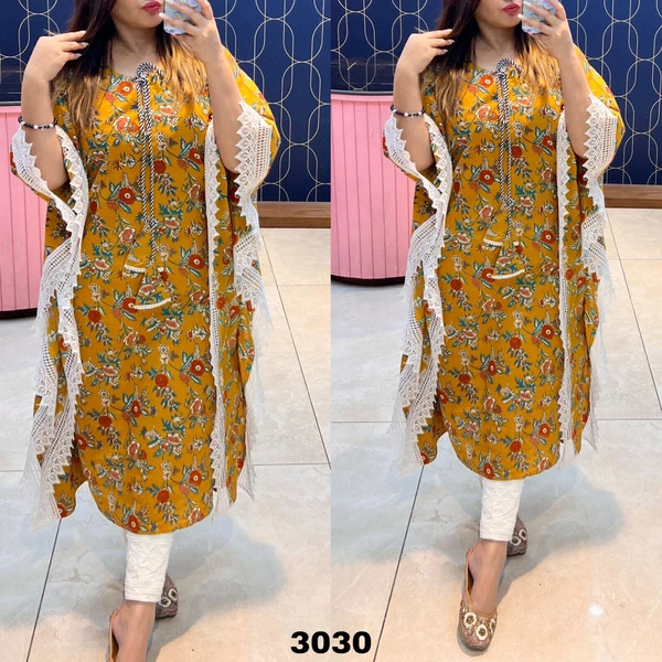Stitched Floral Printed Cotton Rayon soft nd smooth Fabric Kaftan Highlighted With Beautiful Lace Work