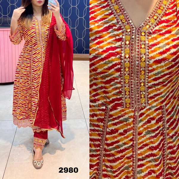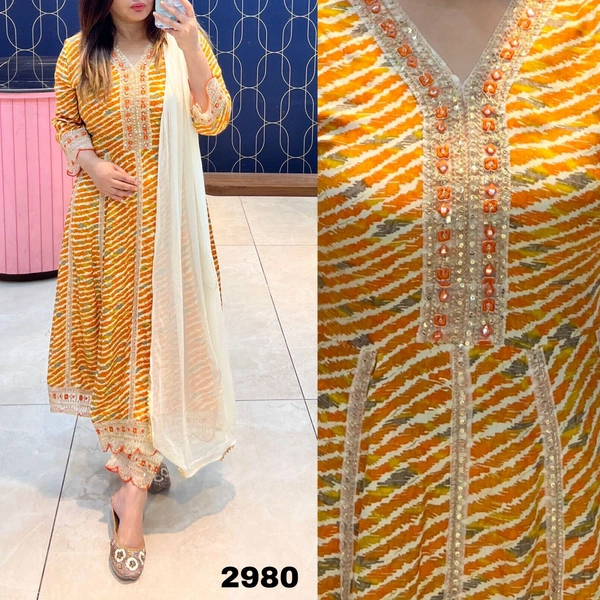 * Lehriya Cotton Kurti Gown With Pant, & Dupatta*