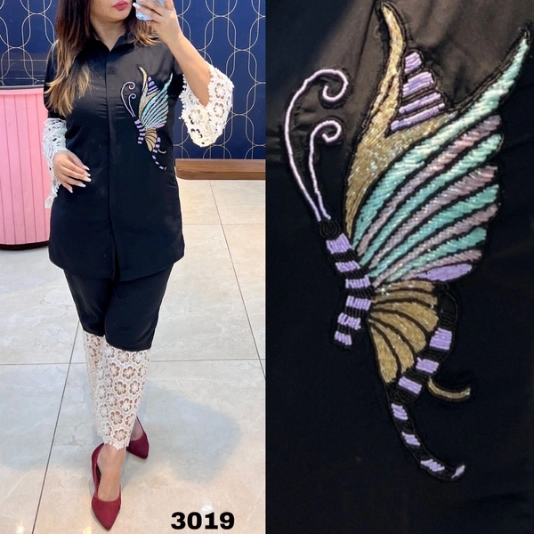 Beautiful Imported Georgette Fabric Designer CordSet Highlighted With Beautiful HandWork And Crochet