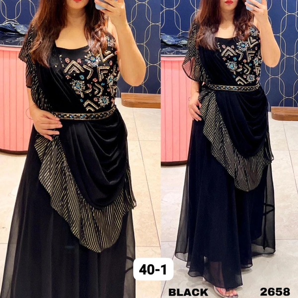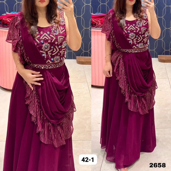 *Skirt**- Georgette fabric Skirt attached with lining Having Beautiful Work