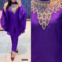 *Kurti*: Stitched Silk Fabric Kaftan kurti Highlighted With Beautiful Handwok Emb