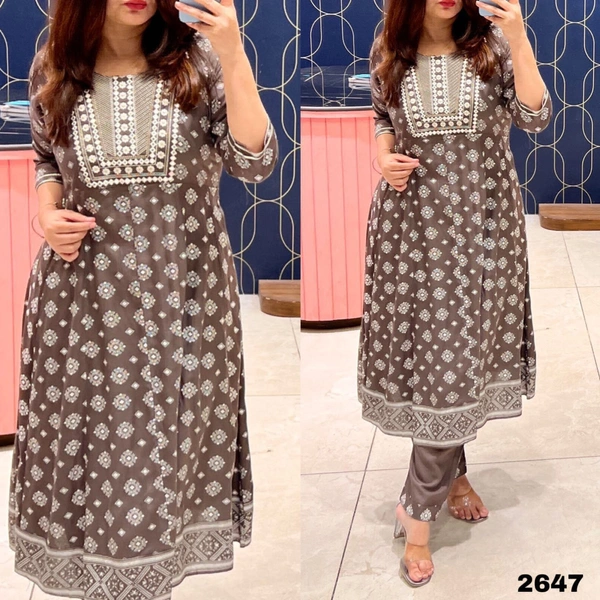 *Rayon Anarkali Kurti With Pant & Chiffon Dupatta*