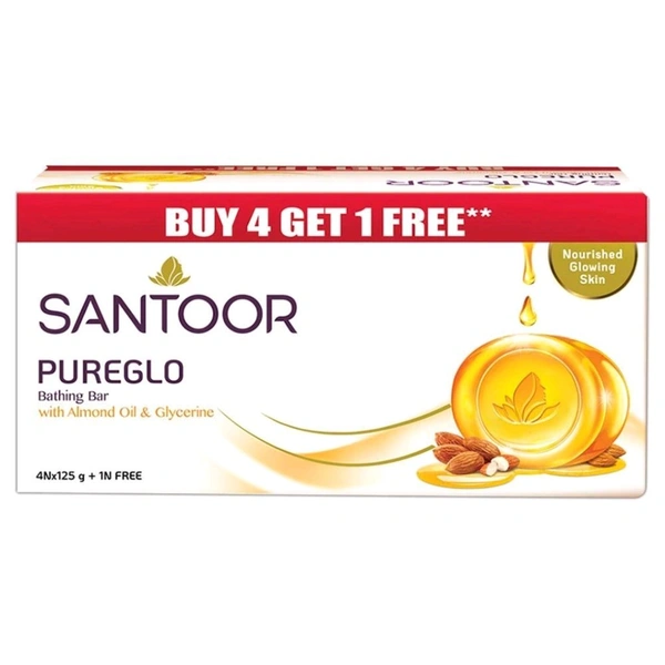 Santoor Pure Glow Almond Oil & Glycerine Soap 125g (Pack Of 5)