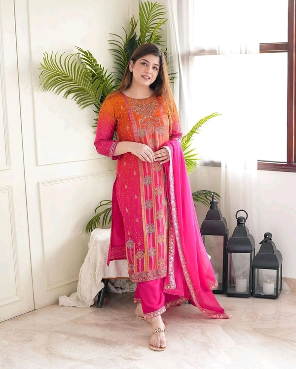 *Featuring beautiful Heavy Suit Set which is beautifully decorated with intricate hand embroidery, Zari weaving . It is paired with matching pants and Lace Dupatta.*