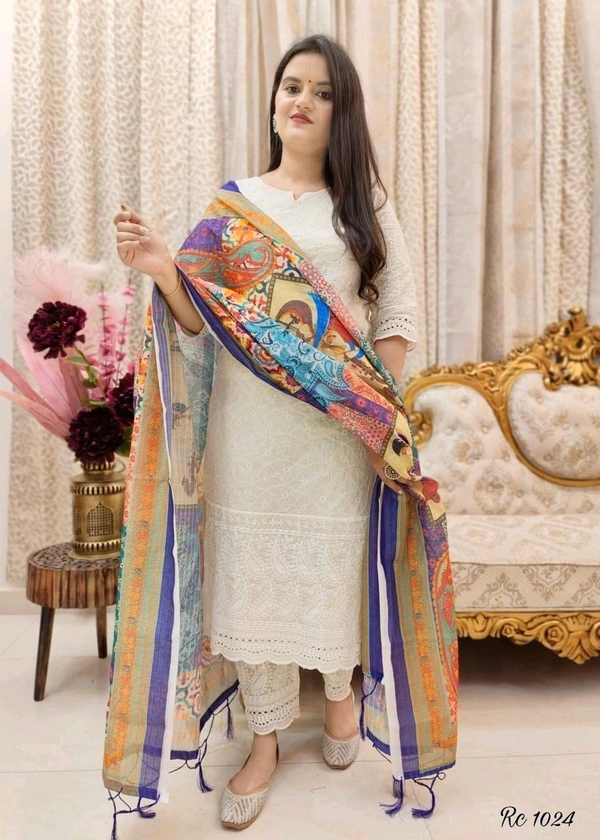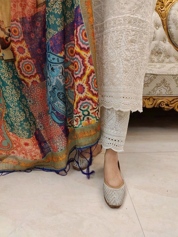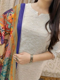 Feel a beautiful vibes of the charming power beautiful chikankari with art silk duppata  style suit set.