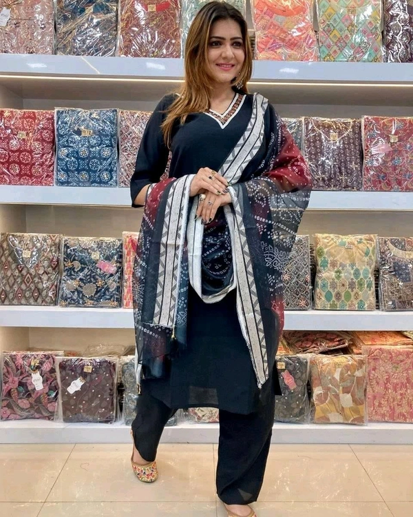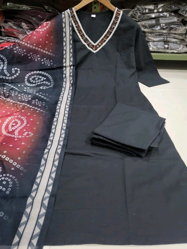 5364 COTTON KURTI WITH HAVING EMBROIDERY WITH BEAUTIFUL LACE CHANDRI COTTON DUPATTA