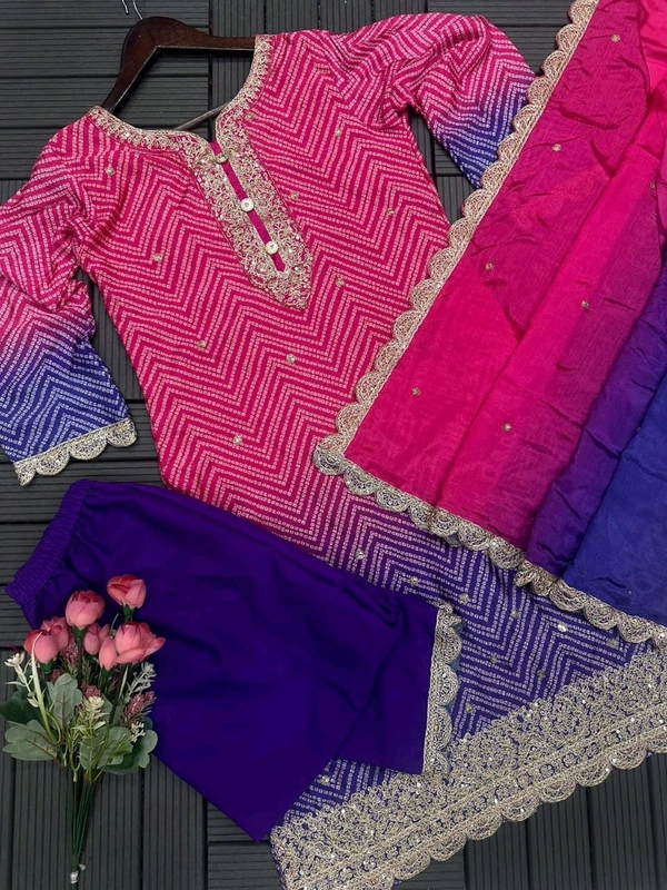 5367 HAVY CHINON WEAR TOP AND PLAZZO. WITH FANCY DUPPATA AND EMBROIDERY