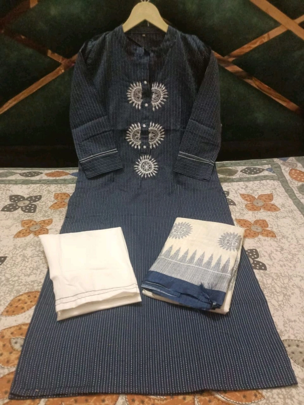 Pure cotton handwoven kurta with embroidery work paired with flower kota silk dupatta and cotton pants 🦋