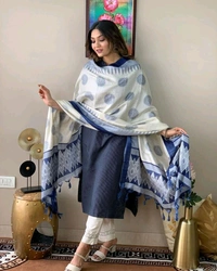 Pure cotton handwoven kurta with embroidery work paired with flower kota silk dupatta and cotton pants 🦋