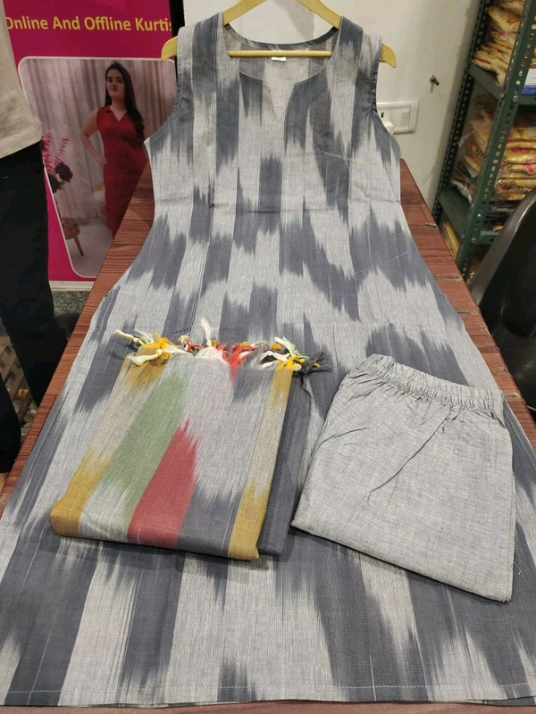 5423 South cotton handloom kurti handloom cotton pants and dupatta*
