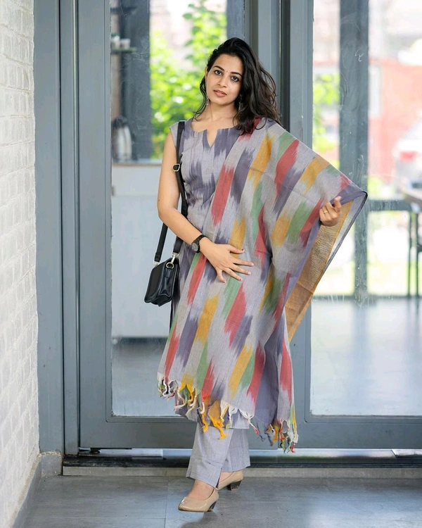 5423 South cotton handloom kurti handloom cotton pants and dupatta*