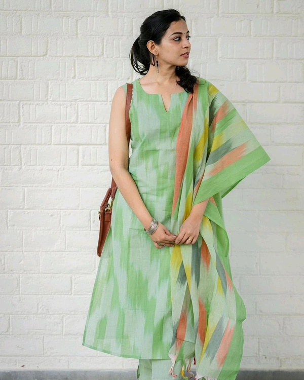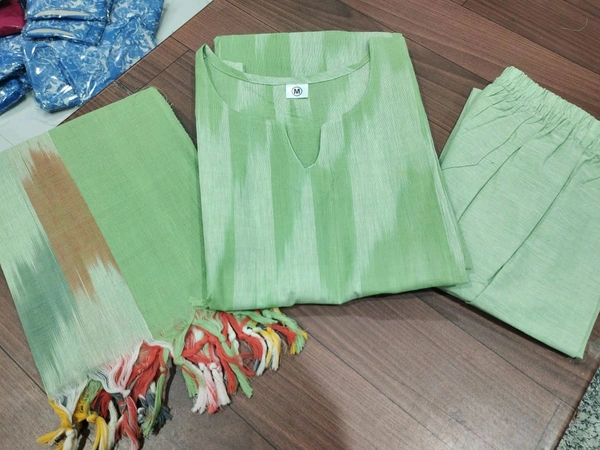5423 South cotton handloom kurti handloom cotton pants and dupatta*