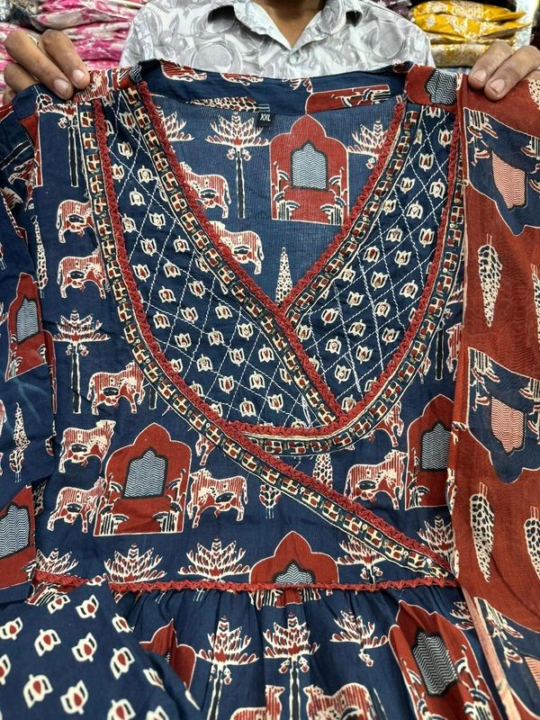 *Pure cotton ANGRAKHA DESIGN Ideal for suqens work and intimate gatherings, this ensemble comes with a full-length matching dupatta and pants. Tradition meets contemporary charm.*