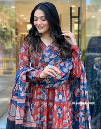 *Pure cotton ANGRAKHA DESIGN Ideal for suqens work and intimate gatherings, this ensemble comes with a full-length matching dupatta and pants. Tradition meets contemporary charm.*