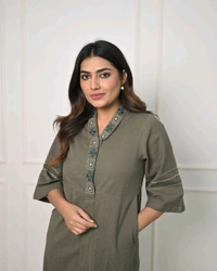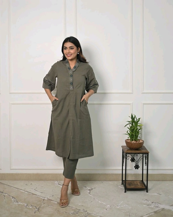How can we not work on something that you all desperately wanted. One of the finest Cotton Slub and bold shade of Collar embroidery Co-Ord set