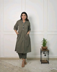 5464 finest Cotton Slub and bold shade of CollarCo-Ord set Cotton SlubBoth side pocket