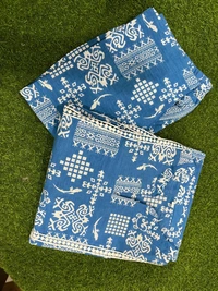 Vibrant yellow & Blue Coord set featuring an elegant betal leaf print,