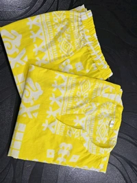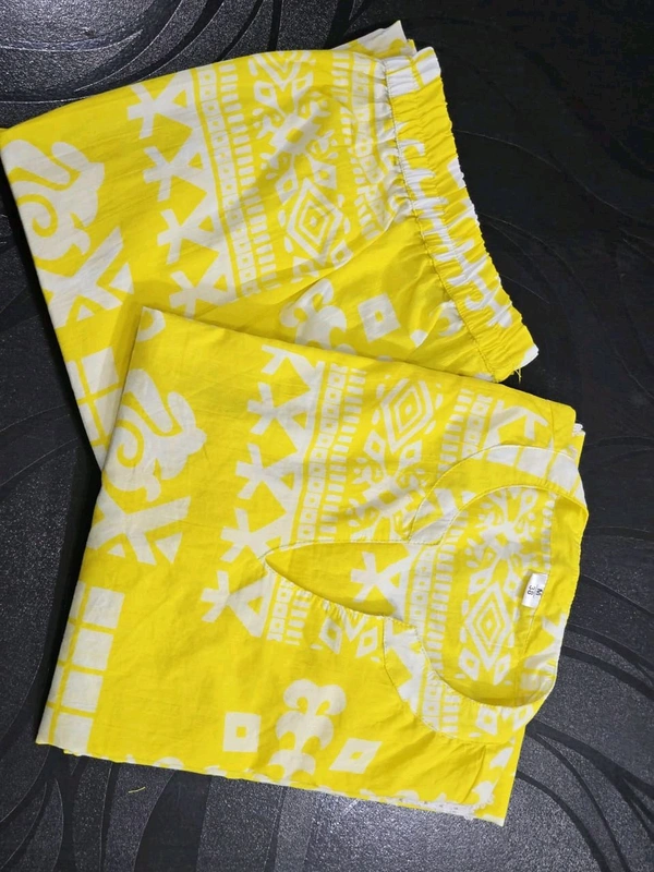 5467 Brighten your wardrobe with betel print Heavy cotton Co-ord setVibrant yellow & Lace Work