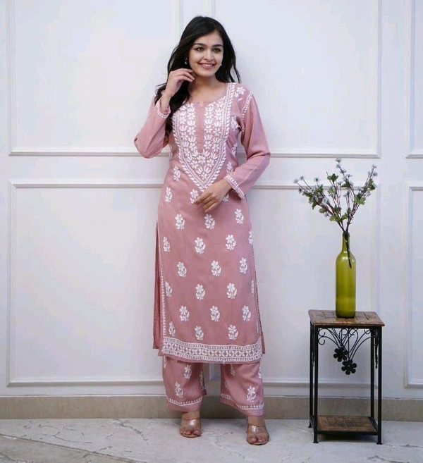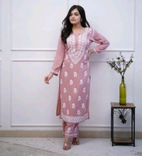 💃🏽 *Rayon bright colour chicken embroidery on kurti and Pant*