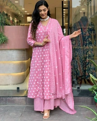 Designer three piece*V* *Neck* *Yoke* Mughal block kurti pant dupatta set in *Premium fine block Mul cotton* whit digital print