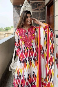 Cotton fabric with Beautiful Lace on Yoke With koti & Flower Funde