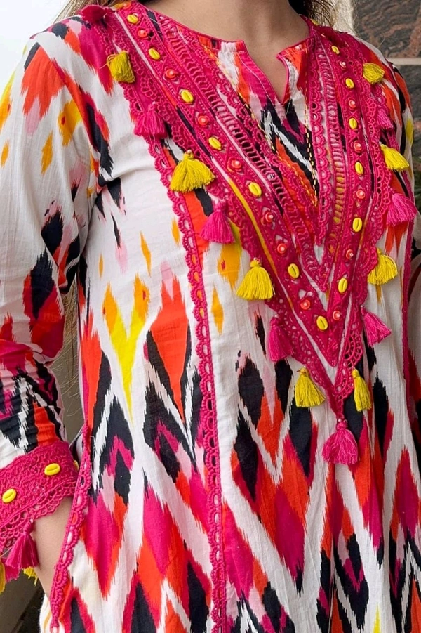 5520 *New exclusive Cotton suit set with Pocket A line Style Kurta+pant*Cotton fabric with Beautiful Lace on Yoke