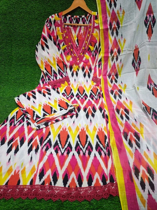 Cotton fabric with Beautiful Lace on Yoke With koti & Flower Funde